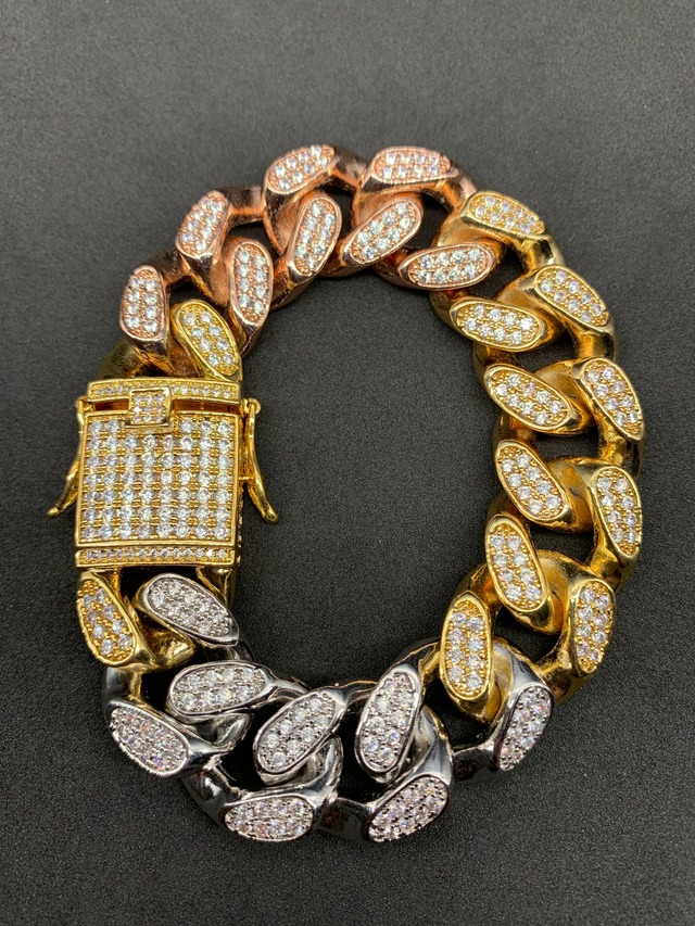 3色カラー トリコロール ブリンブリン ブレスレット マイアミキューバン