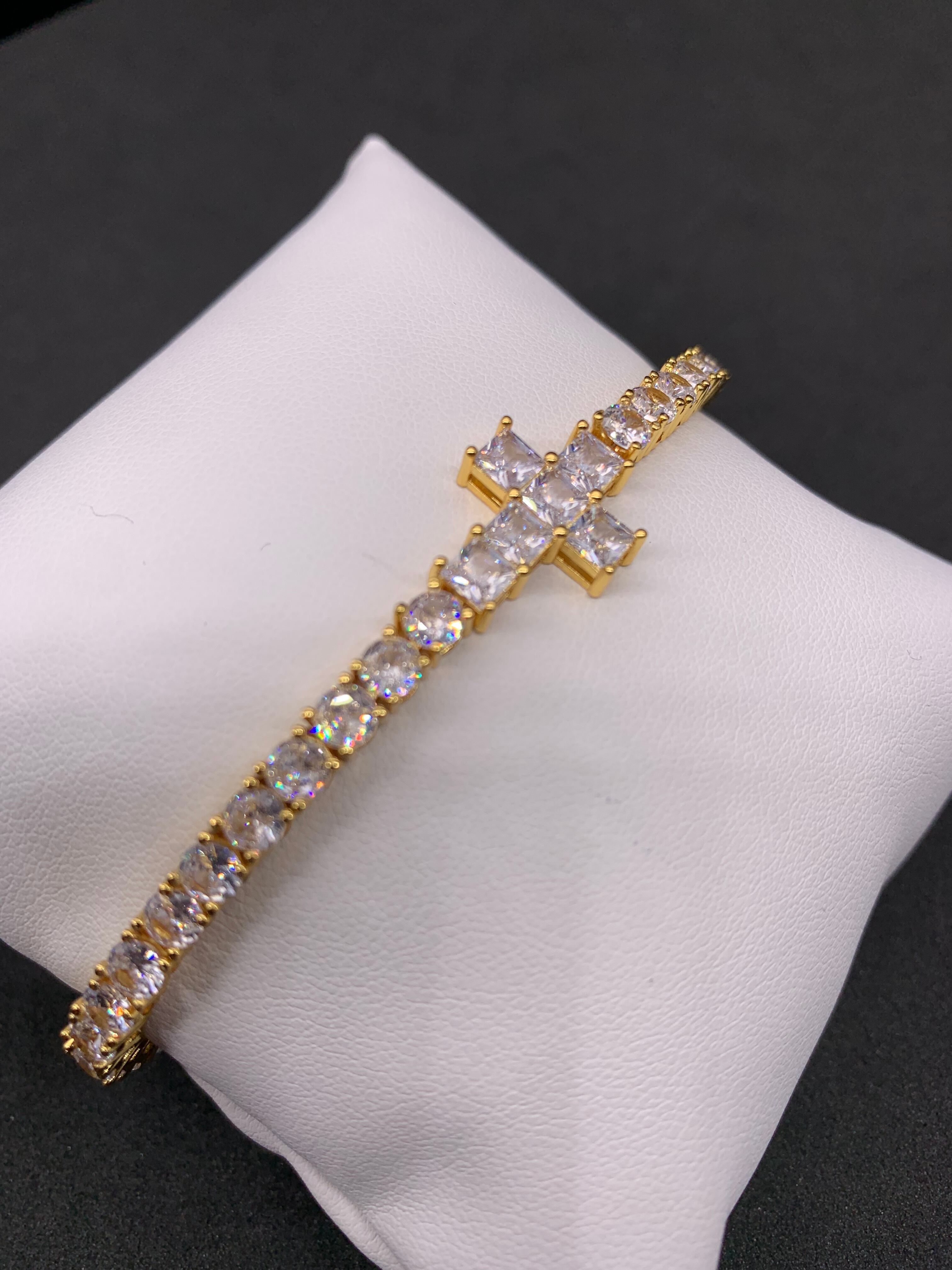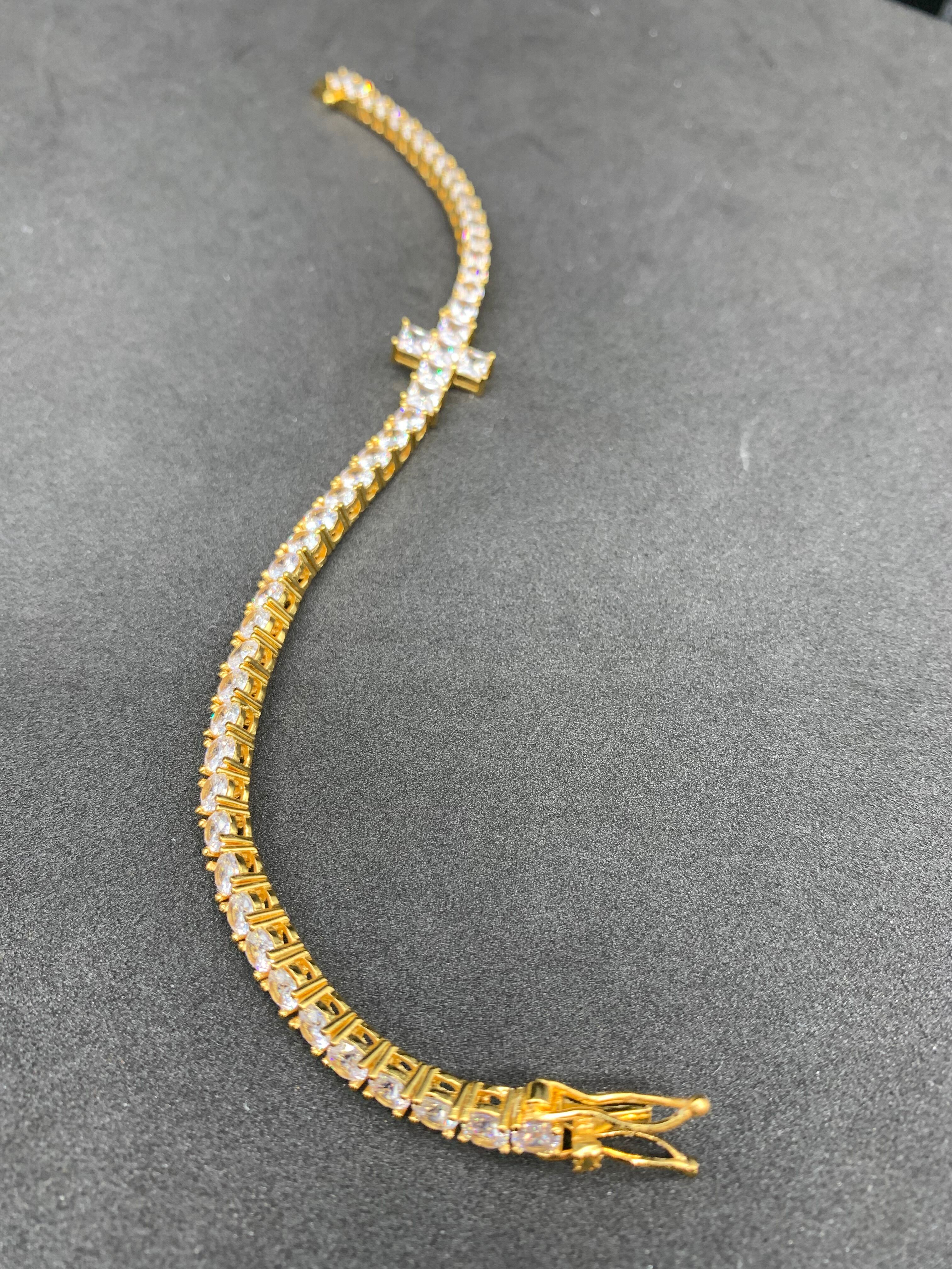 十字架 テニスチェーン CZ ブレスレット ジルコニア ブリンブリン ゴールド