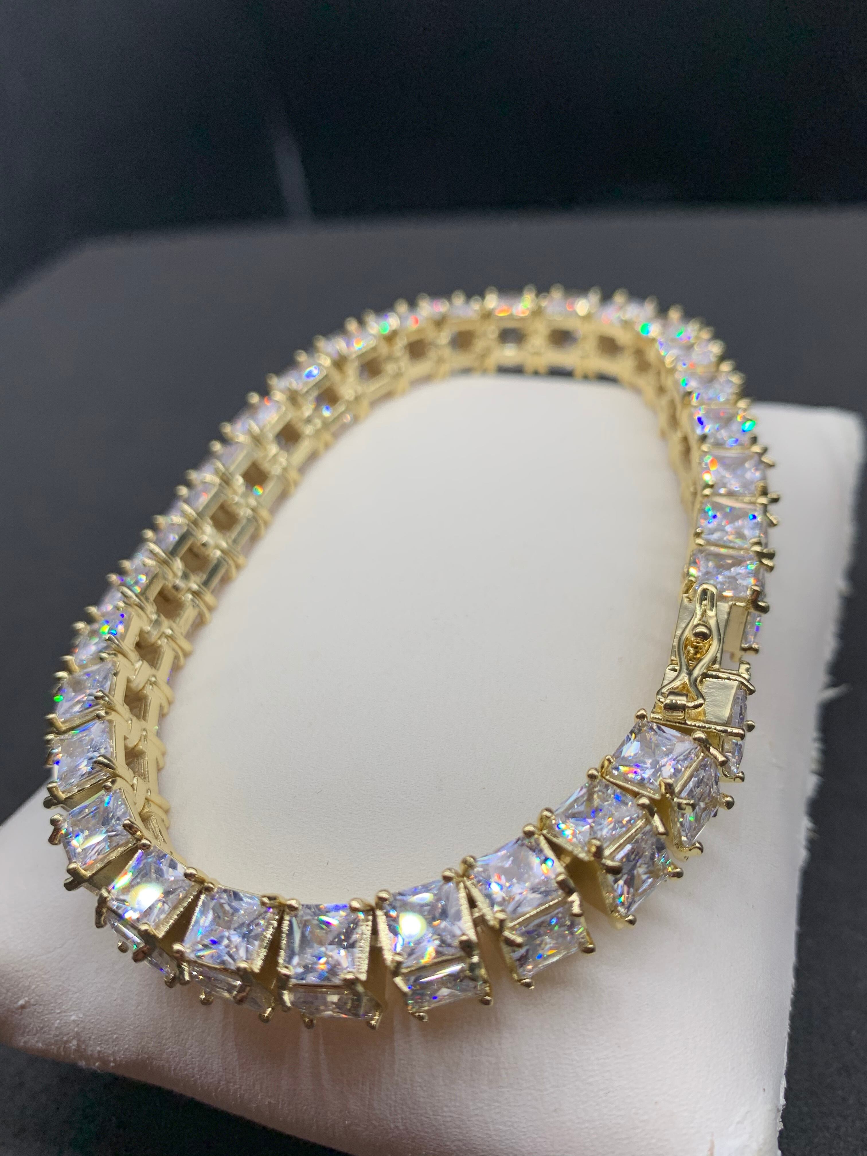 輝き抜群!立方体スクエア ジルコニアダイヤ ブリンブリン ブレスレット ゴールド