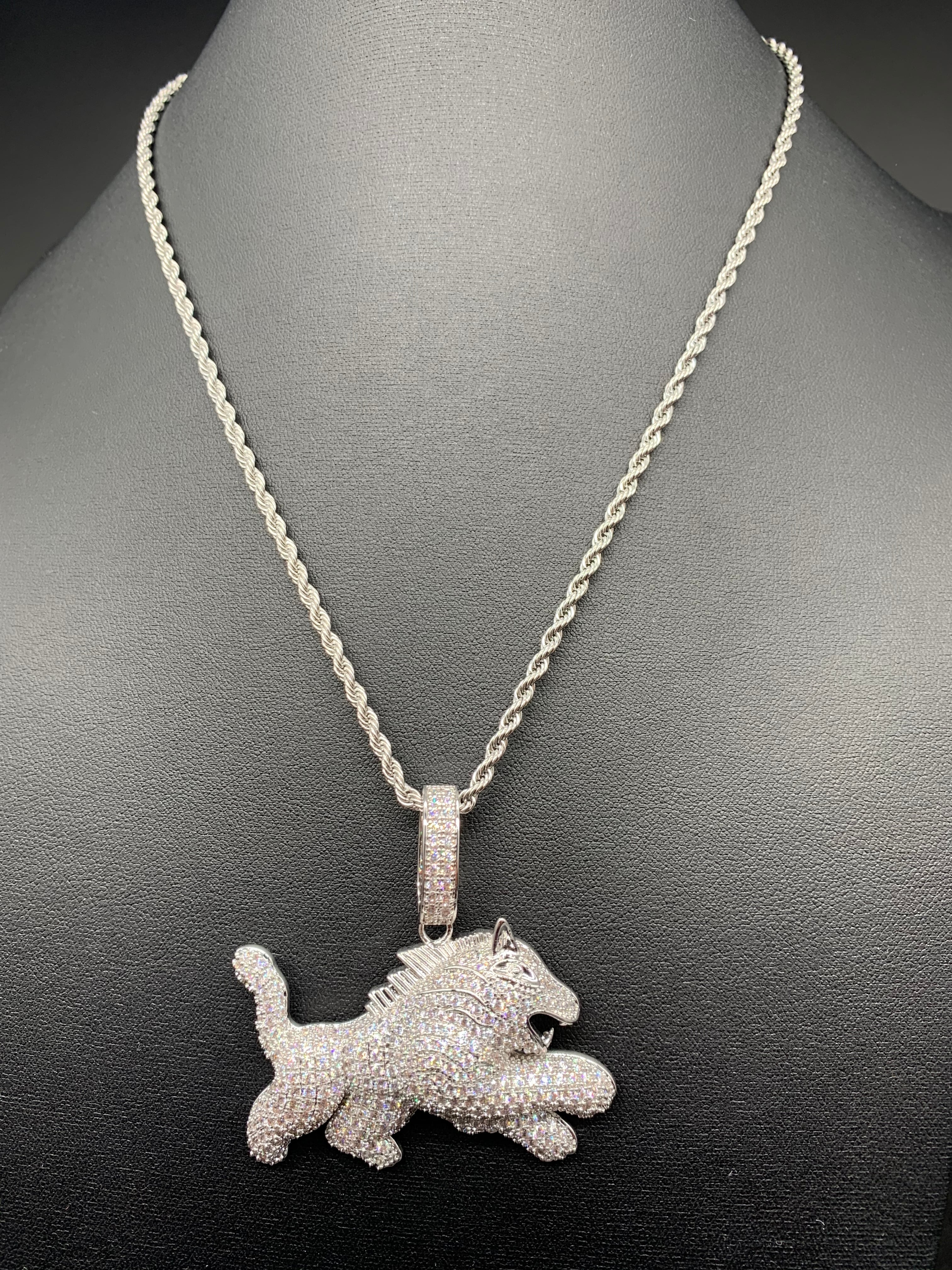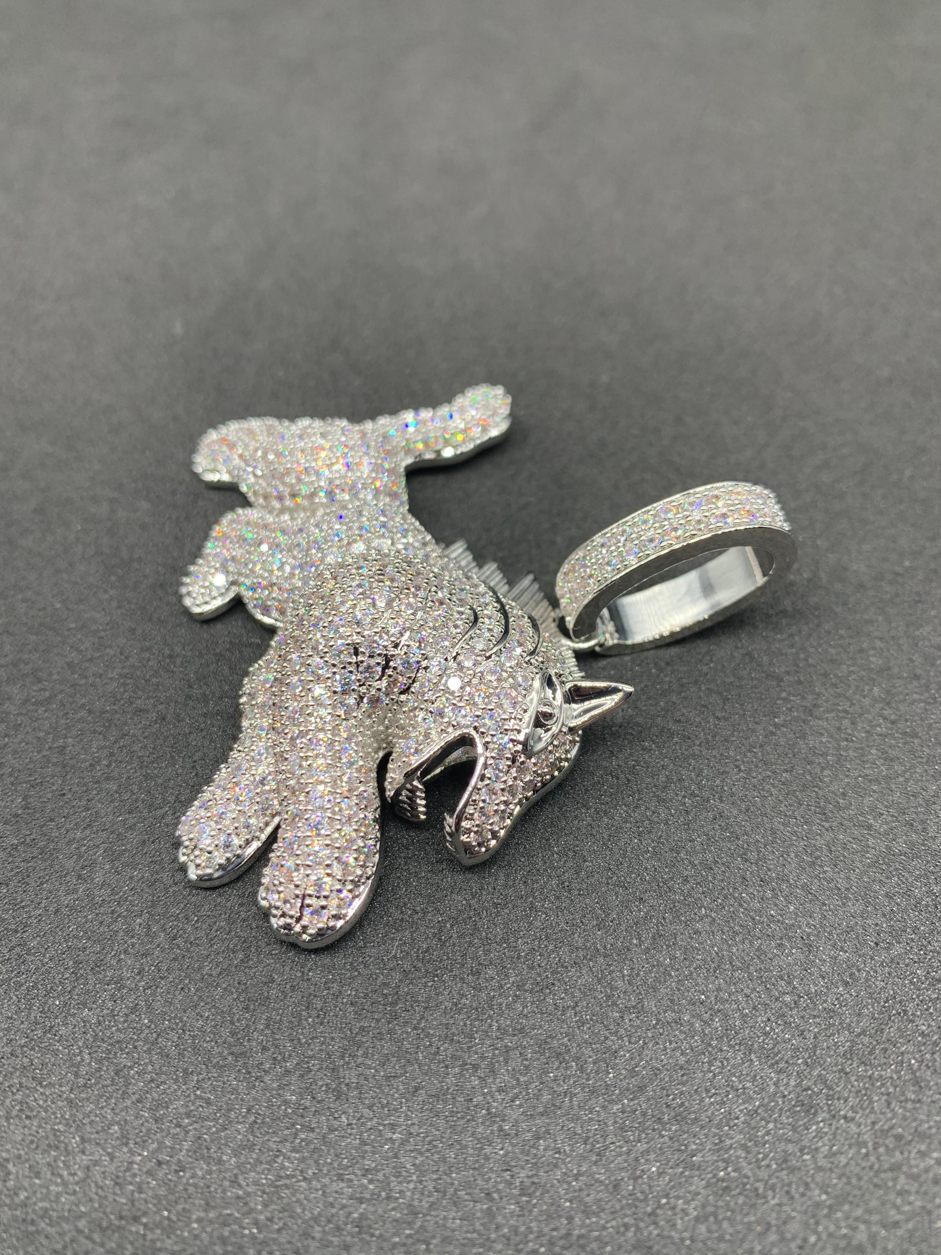 飛び掛かる肉食獣! シルバー ジルコニア ブリンブリン アニマル ネックレス