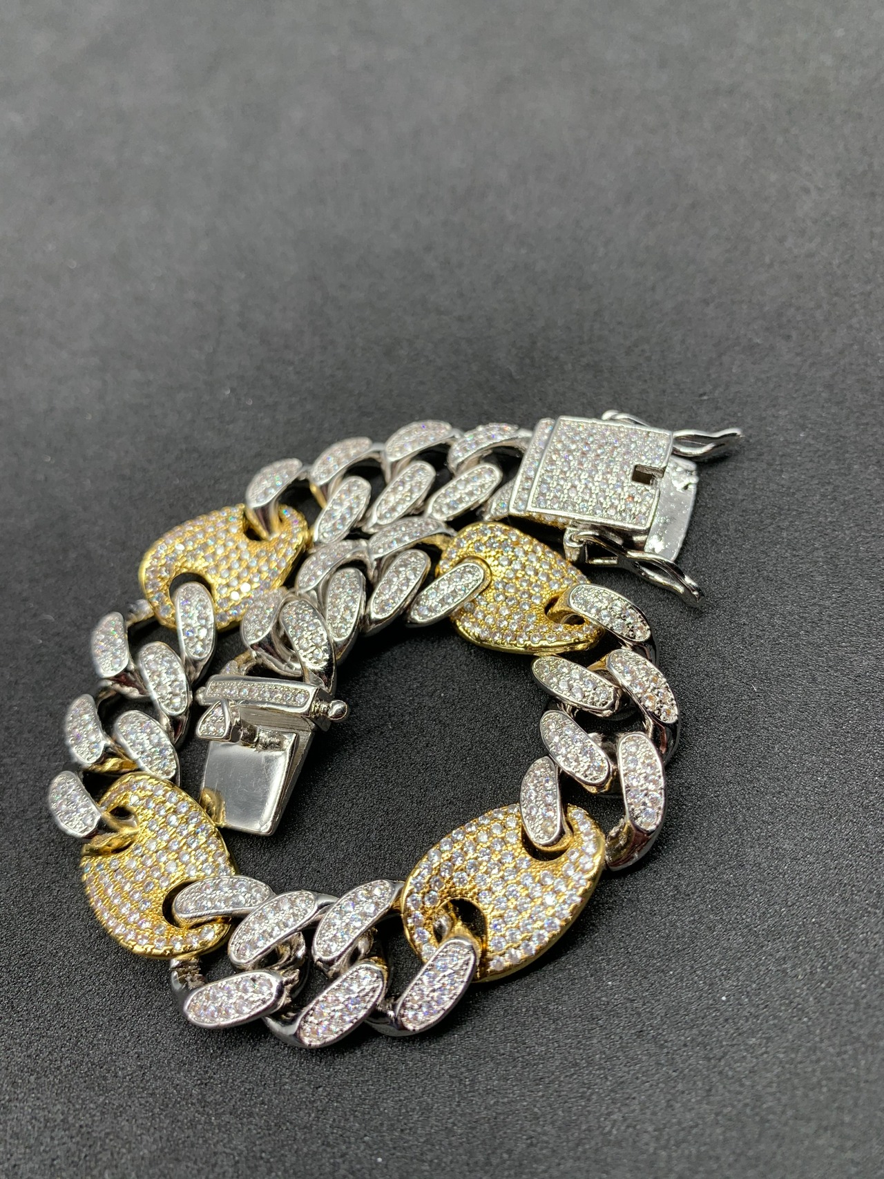 ツートン お洒落!グッチリンク マイアミチェーン ブリンブリン ブレスレット