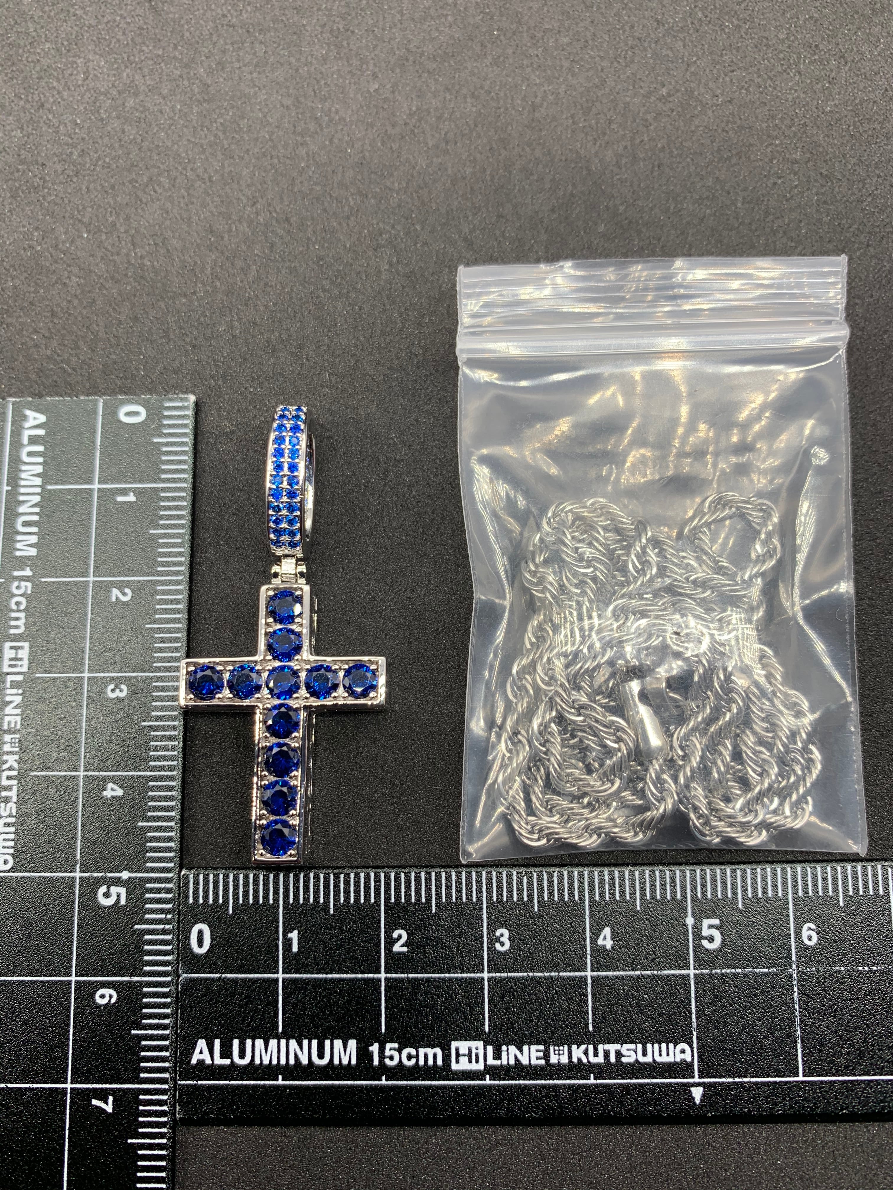 リバーシブル! グリーン&ブルー 十字架 ブリンブリン ネックレス ロザリオ