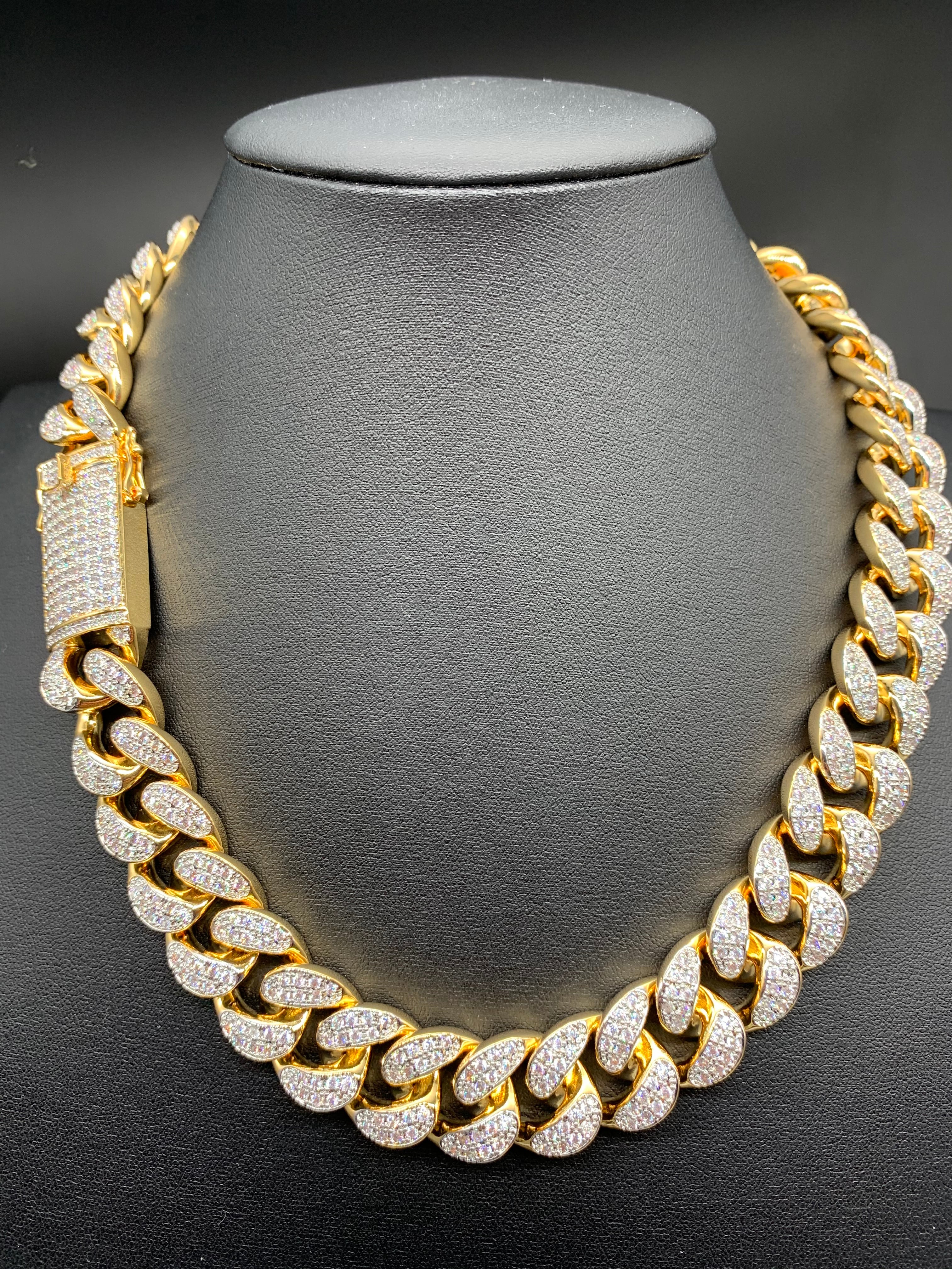 【ハイクオリティ】パヴェ留 Wカラー 20㎜ マイアミチェーン ブリンブリン