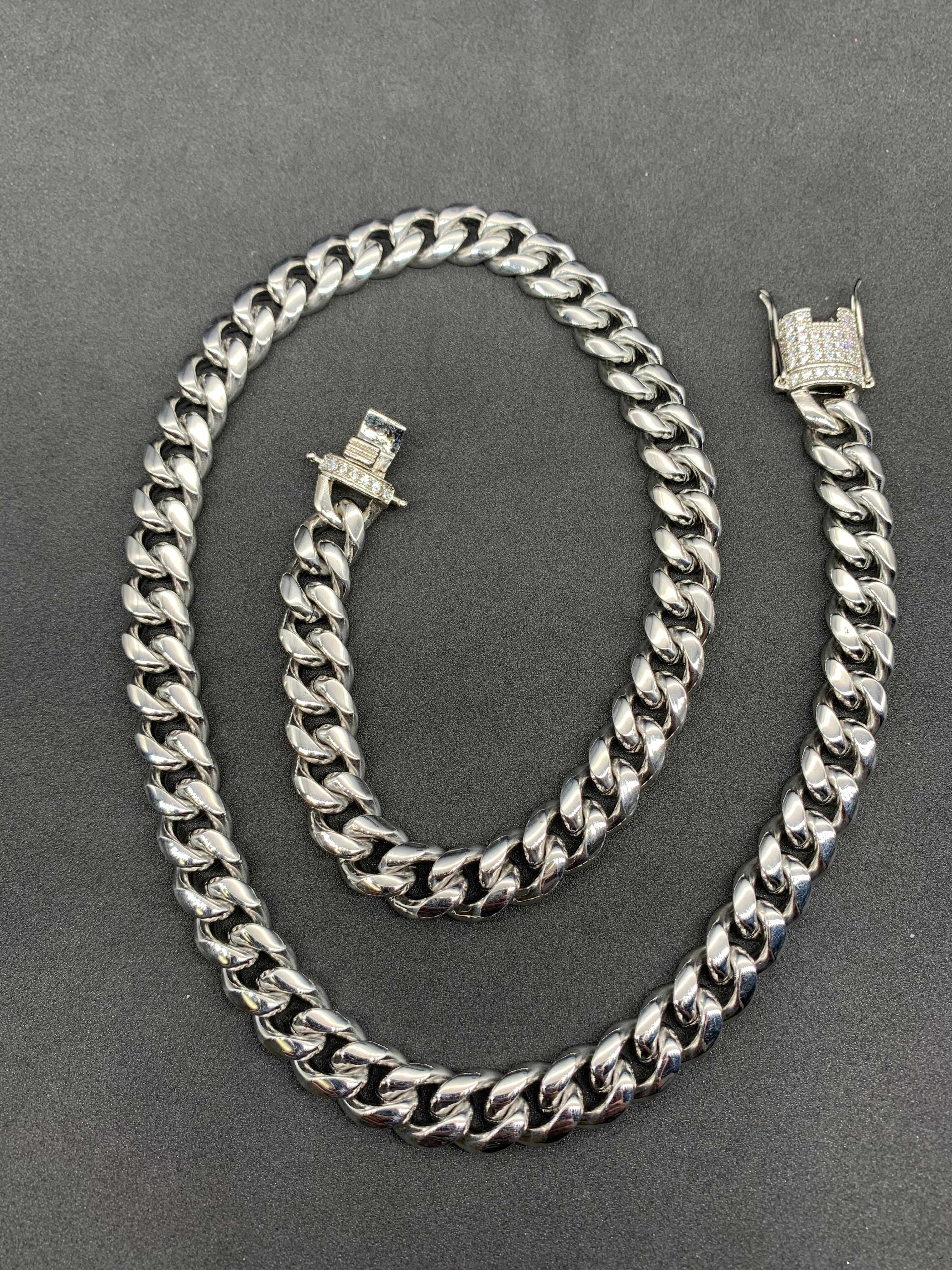 人気!10㎜20インチ ステンレス マイアミキューバン ブリンブリン ネックレス