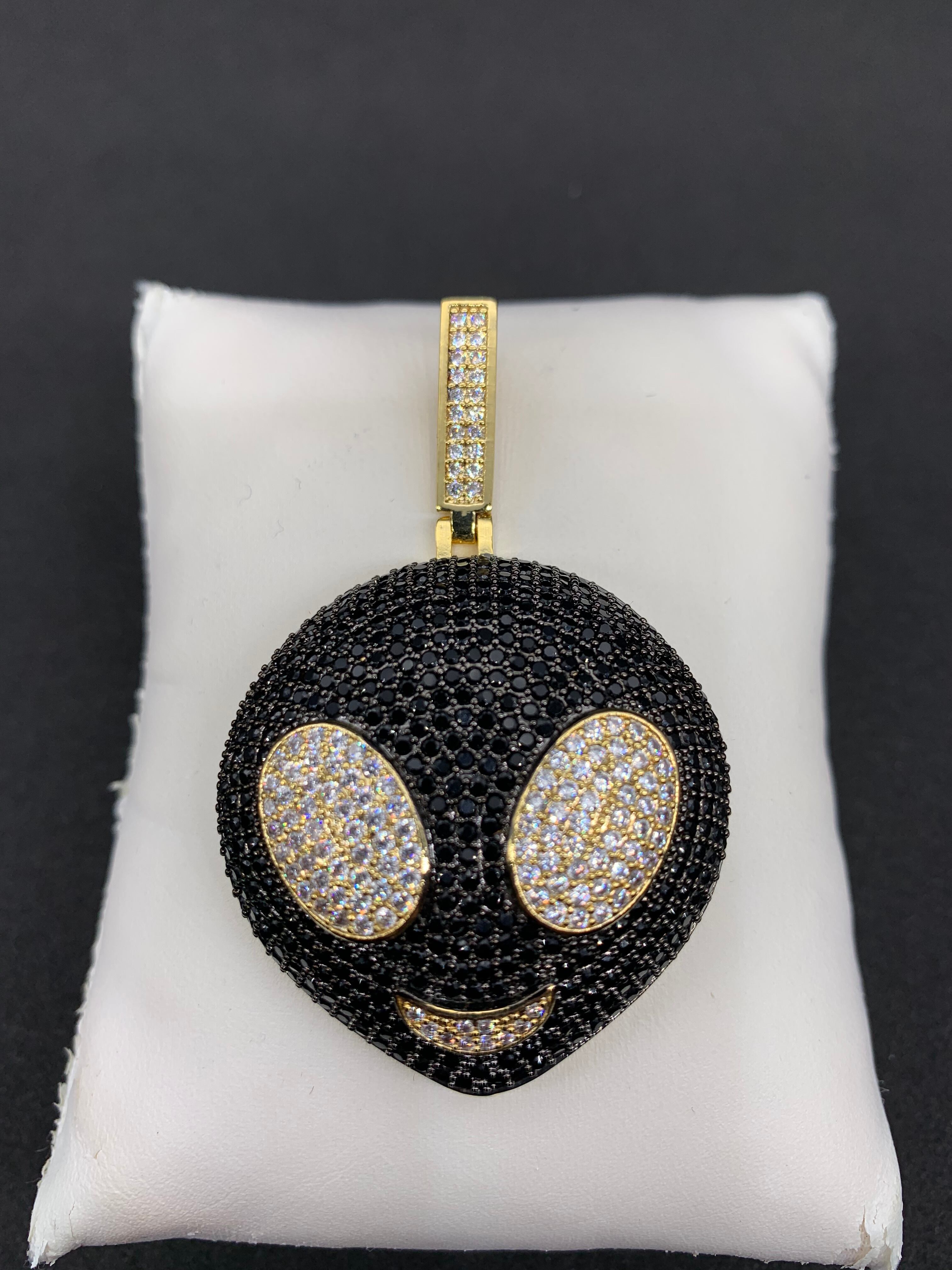 ブラックジルコニア のフェイスに見開いた眼差しがカッコいい宇宙人 エイリアン デザインのネックレスです。