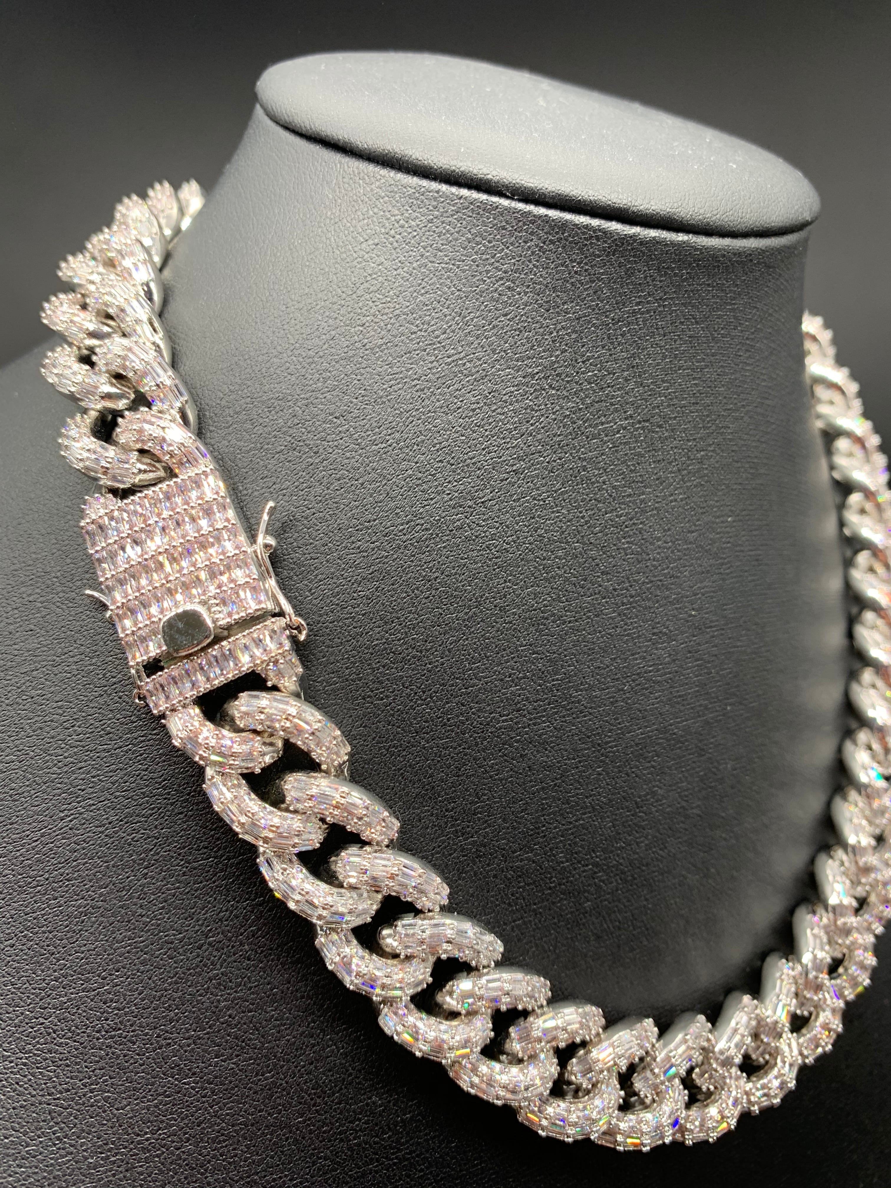 超高品質!長方形 ジルコニア ダイヤ マイアミチェーン ブリンブリン ネックレス