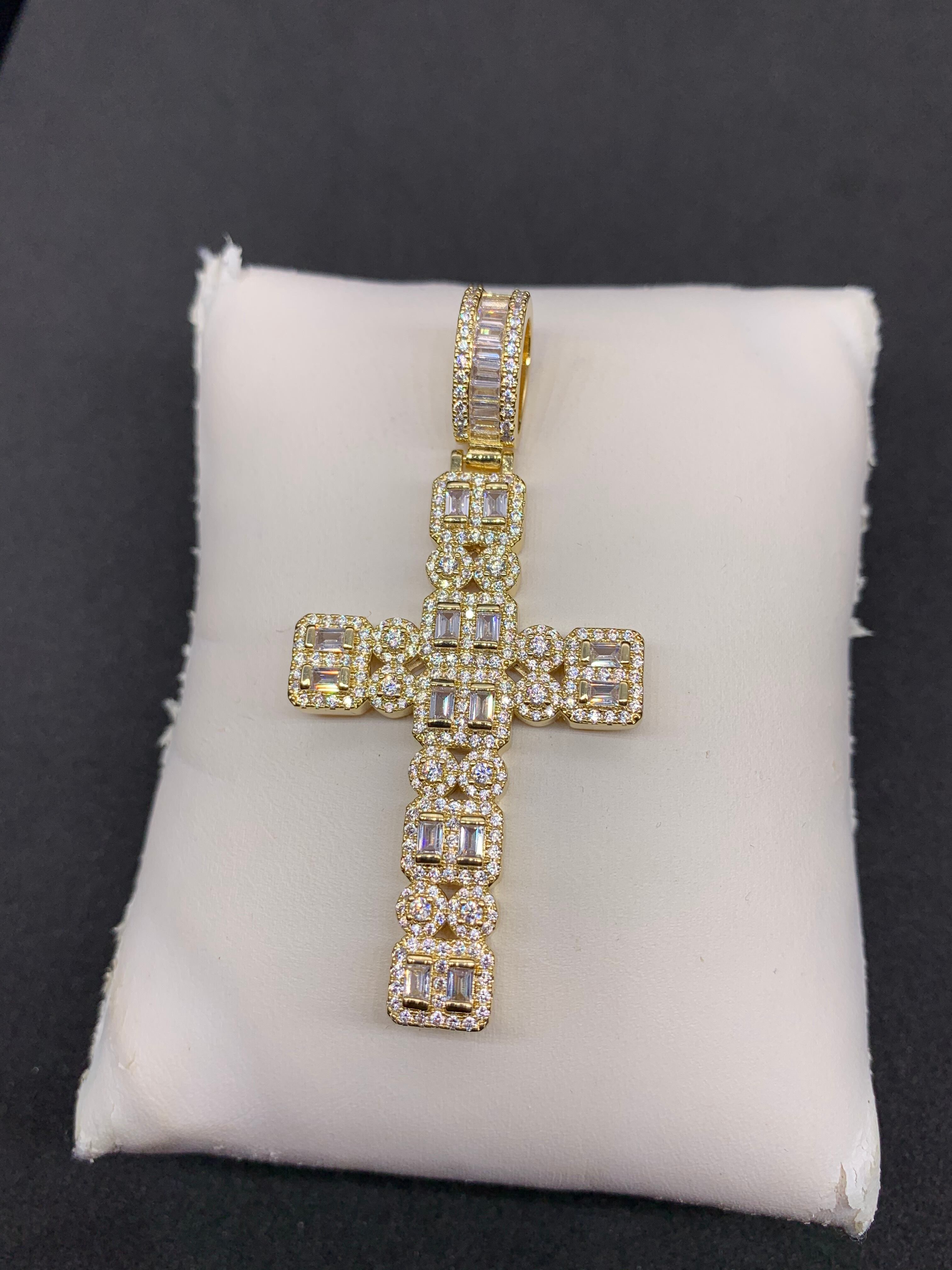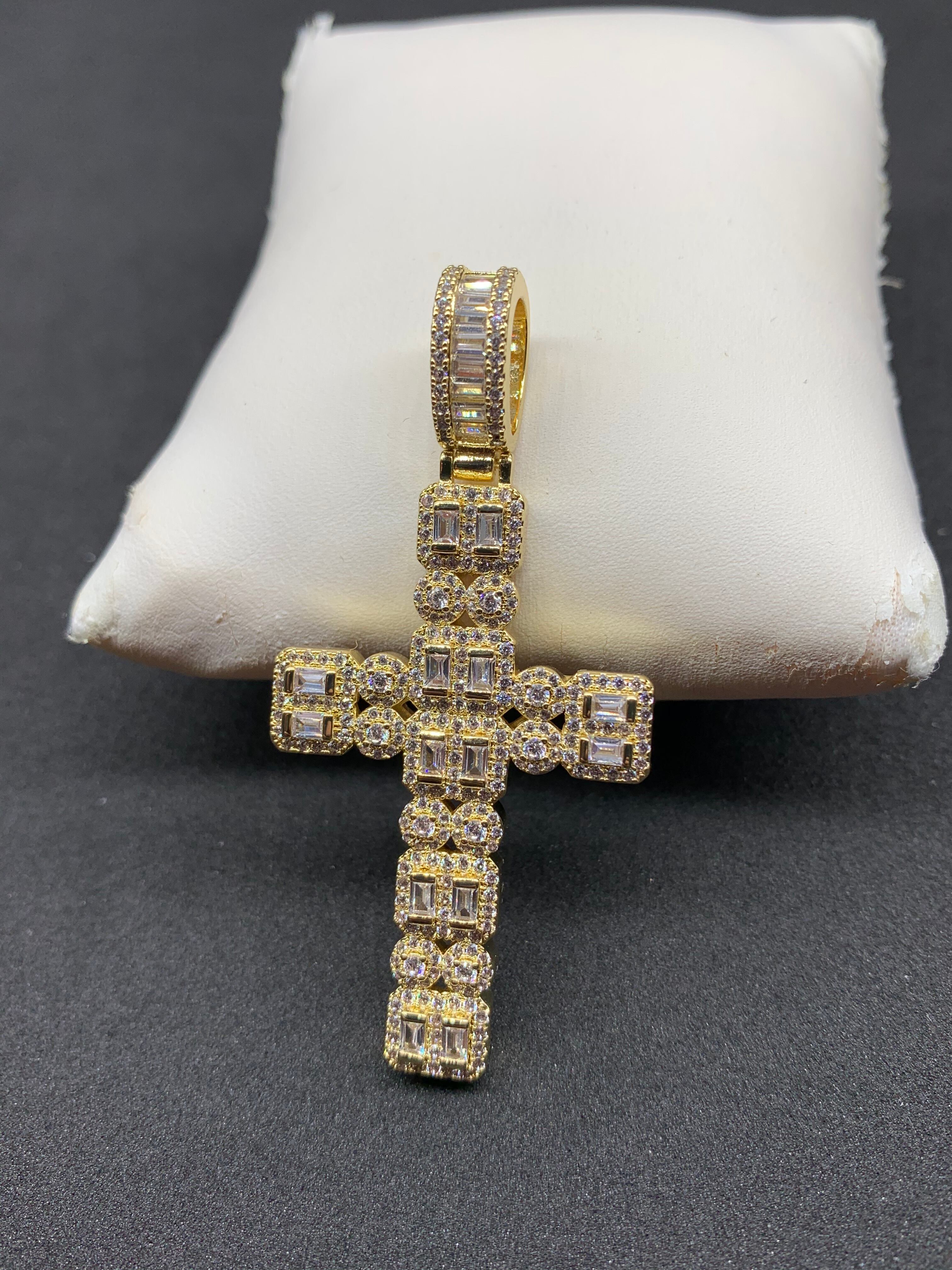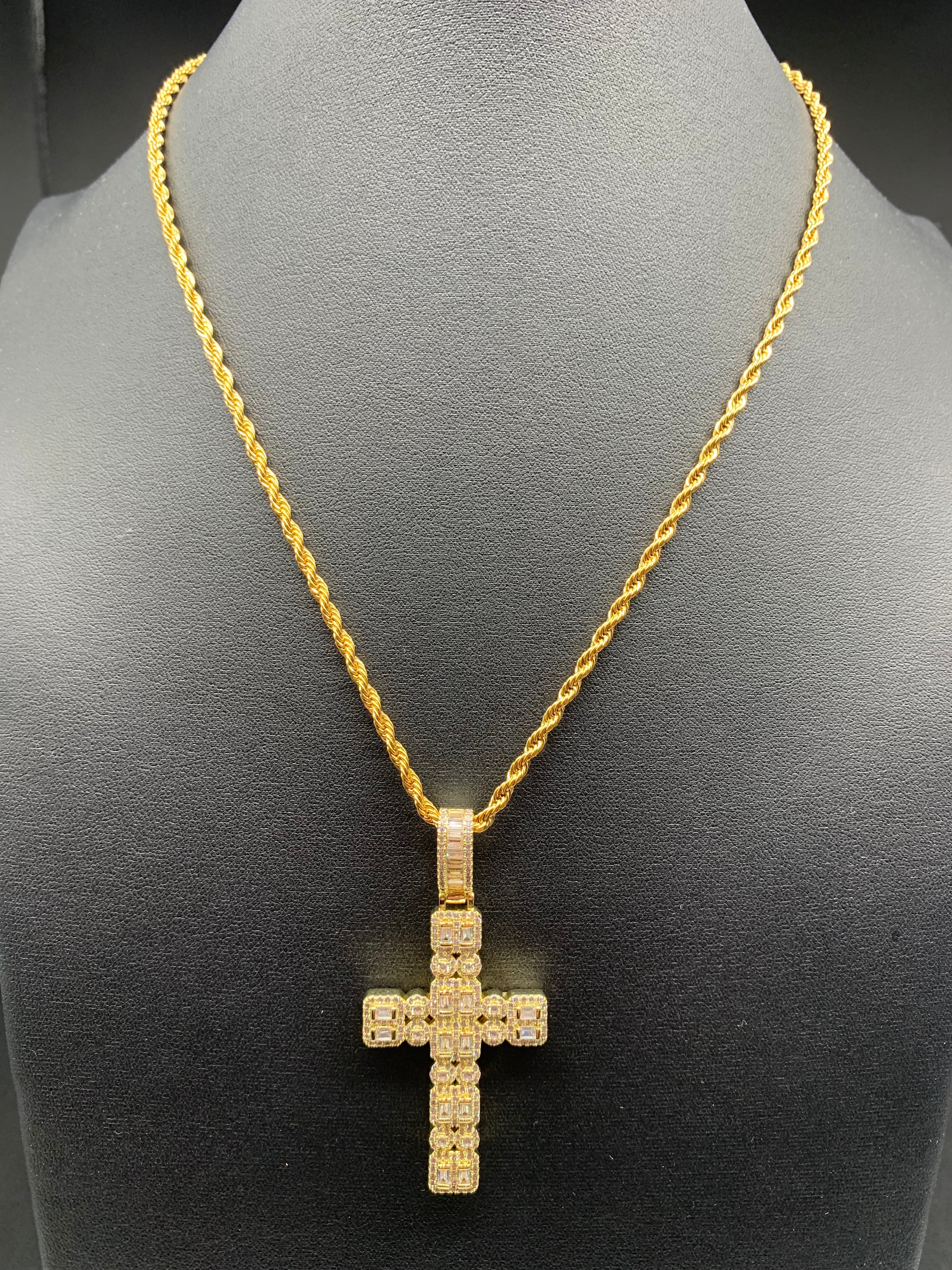 スクエア型とサークル型異なる形の高品質ジルコニアが綺麗にダブル配列された十字架のデザインをしたネックレスです。