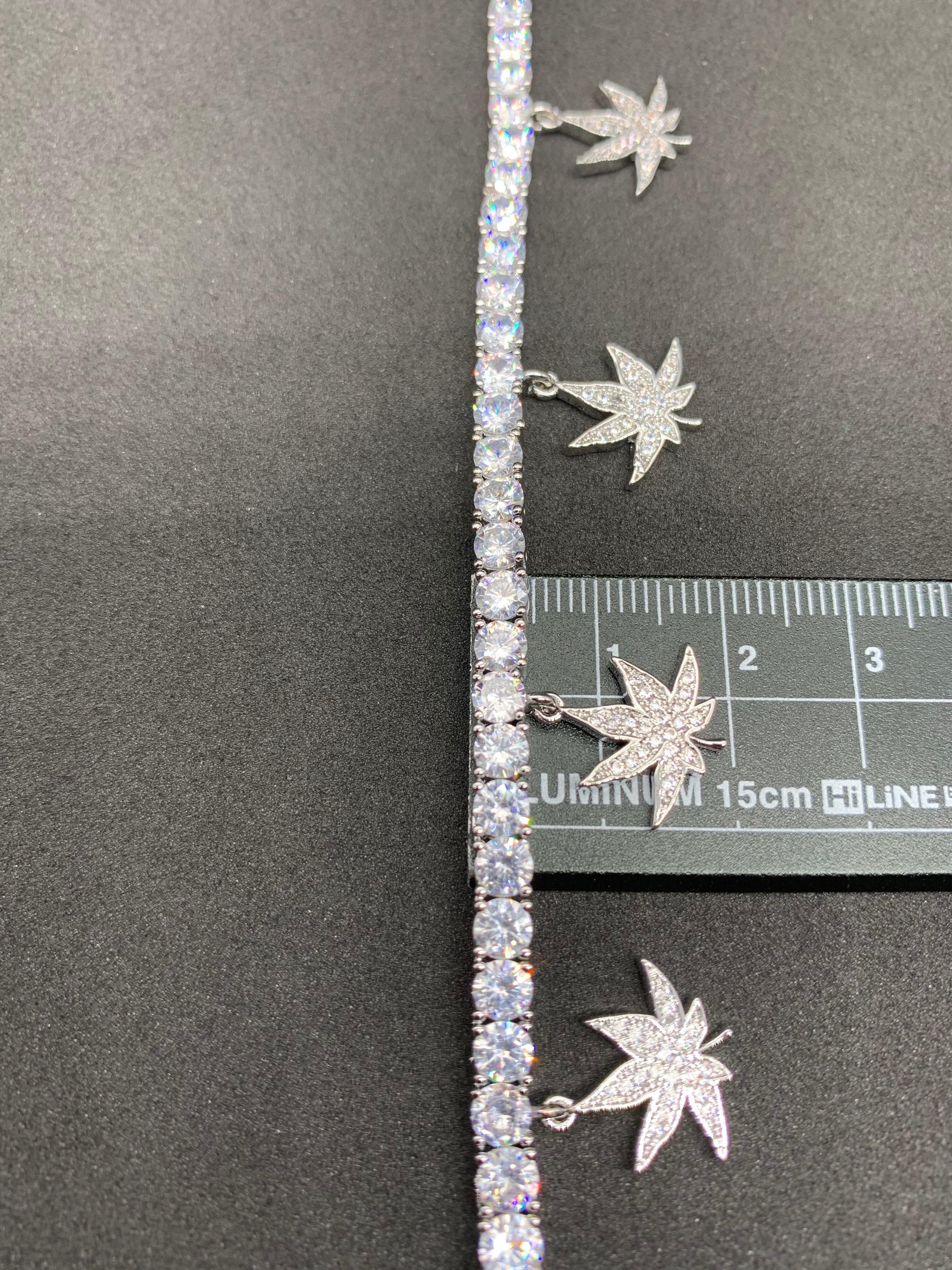 高級感抜群の5㎜のテニスチェーン。7枚の葉っぱをアクセントしたお洒落なネックレスです。