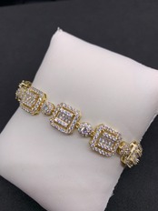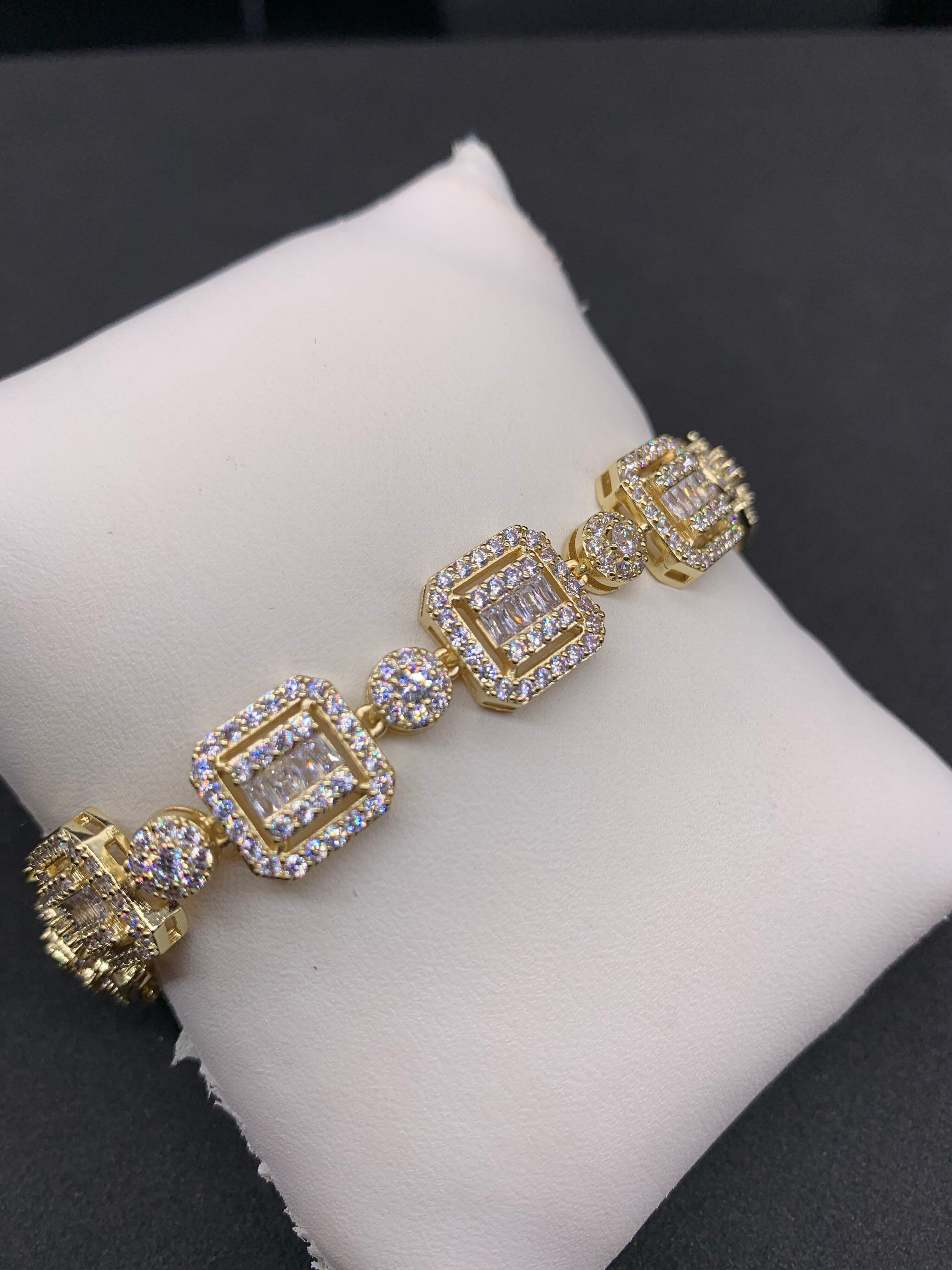 お洒落! ゴールド サークル&スクエア ブレスレット ブリンブリン ジルコニア