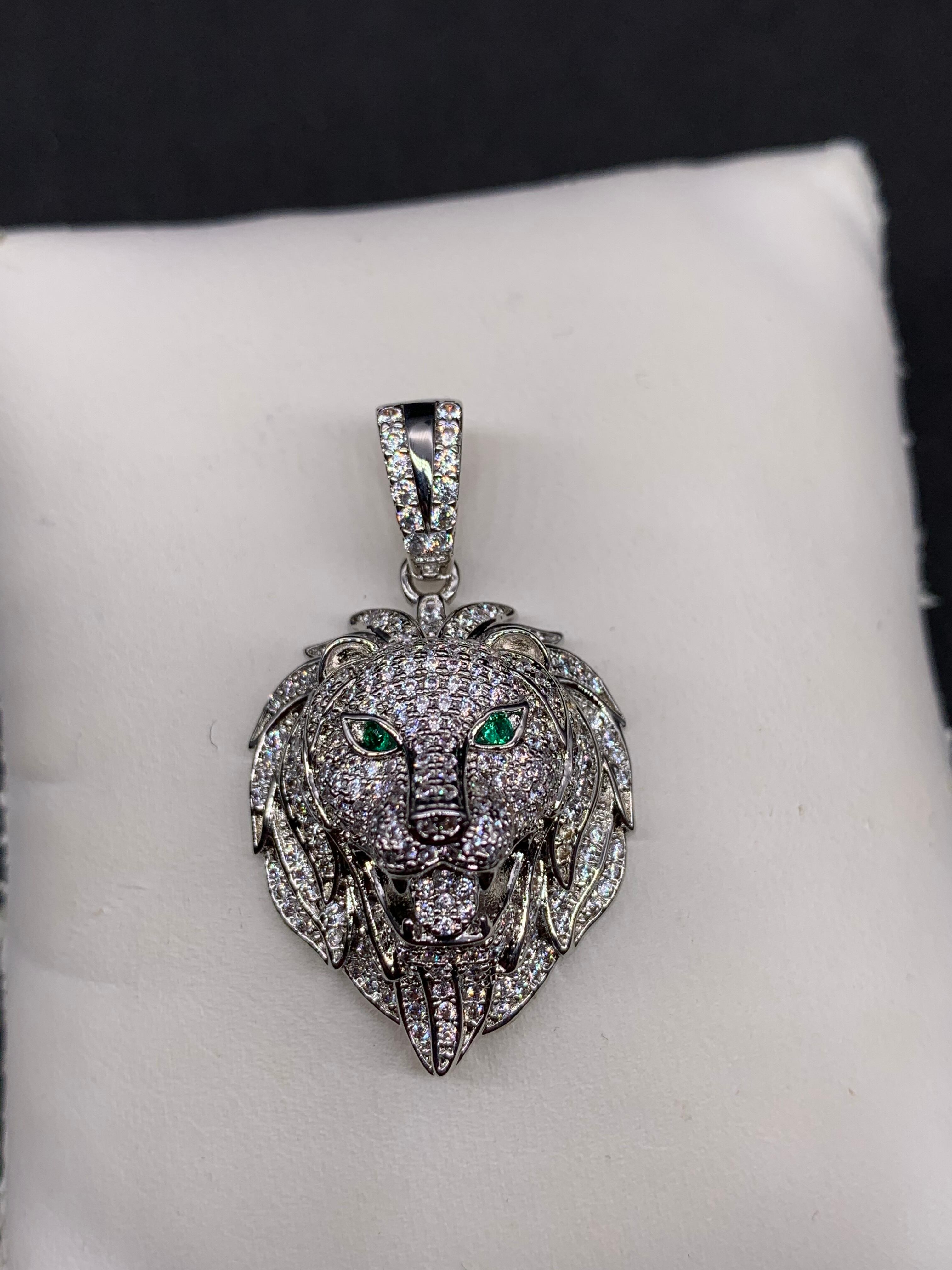 cool!グリーンアイ シルバー ライオン ブリンブリン ネックレス