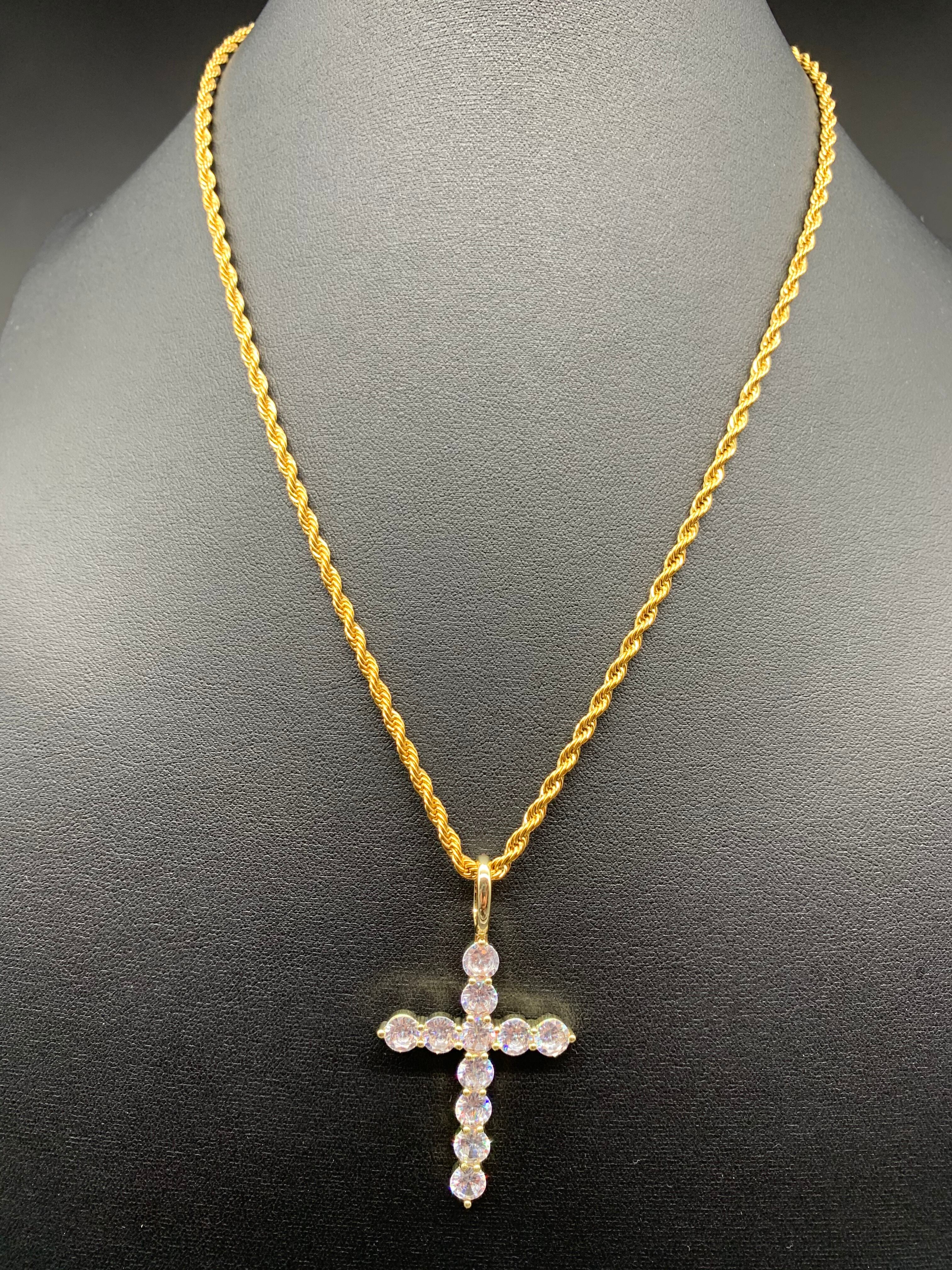 大粒サークル型 ジルコニア十字架 ブリンブリン ゴールド ネックレス ロザリオ