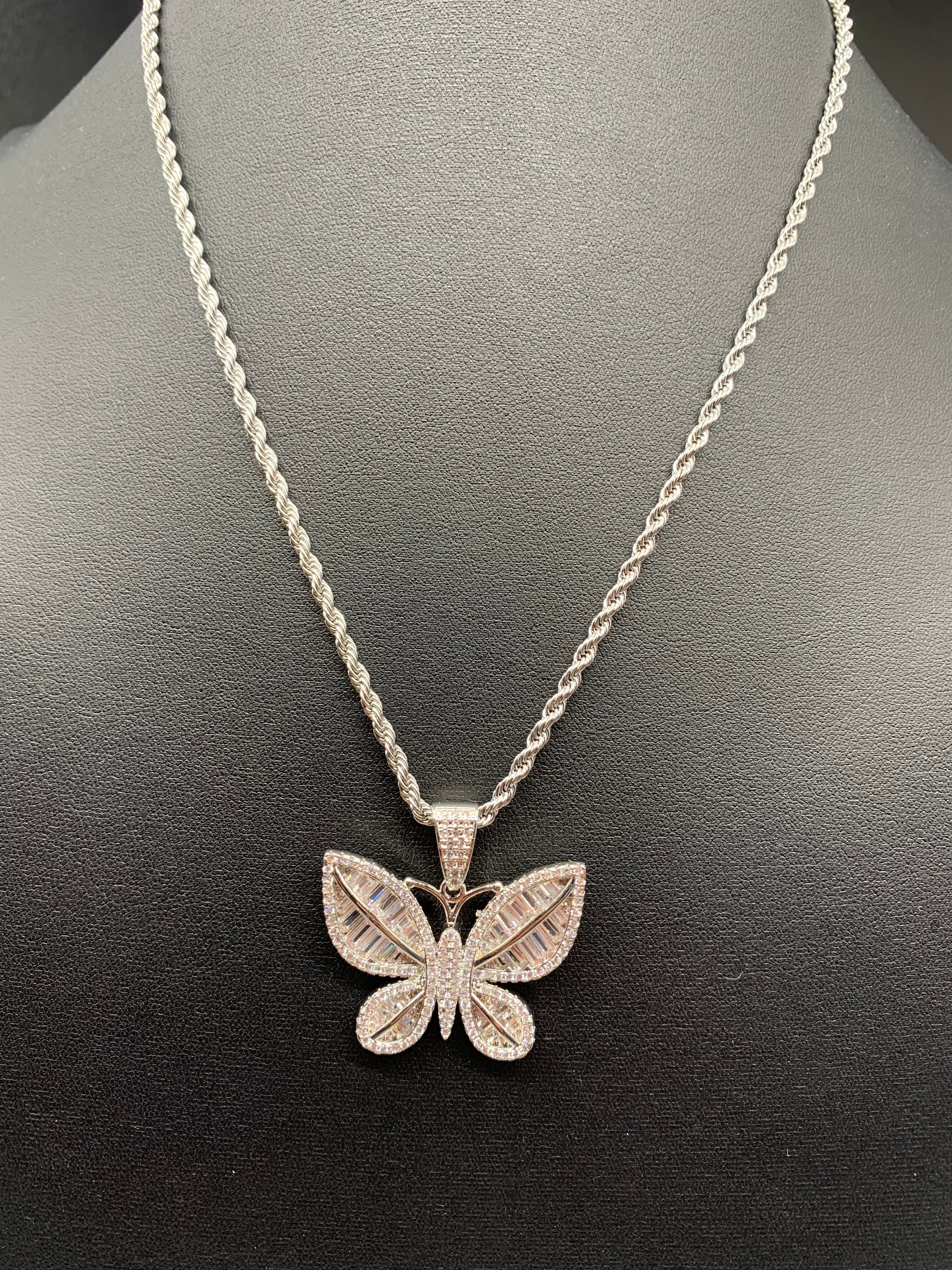 蝶々 シルバー ブリンブリン ネックレス ジルコニア ダイヤ ペンダント