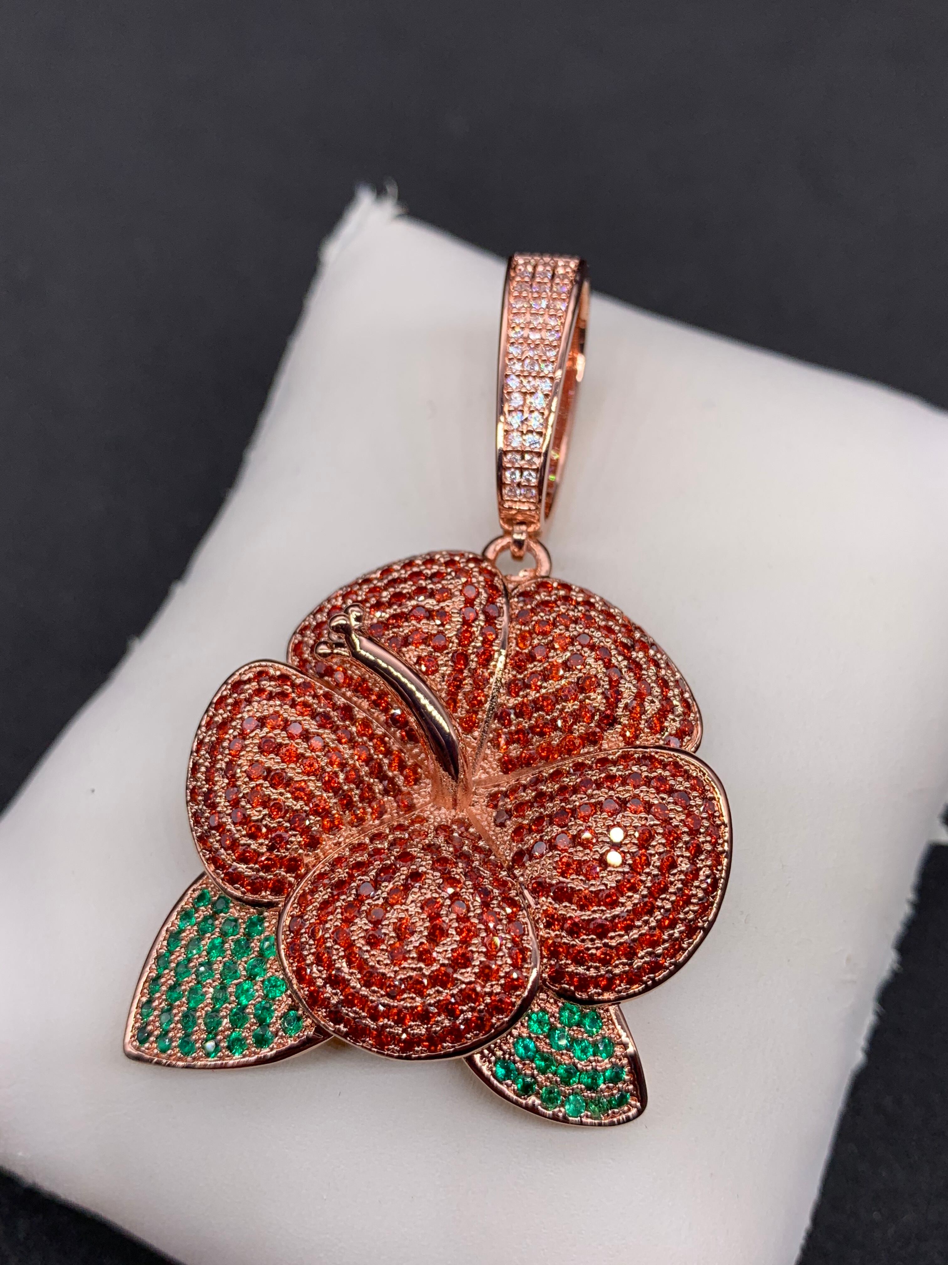 お洒落で輝き抜群な ハイビスカスお花のデザインのネックレスです。