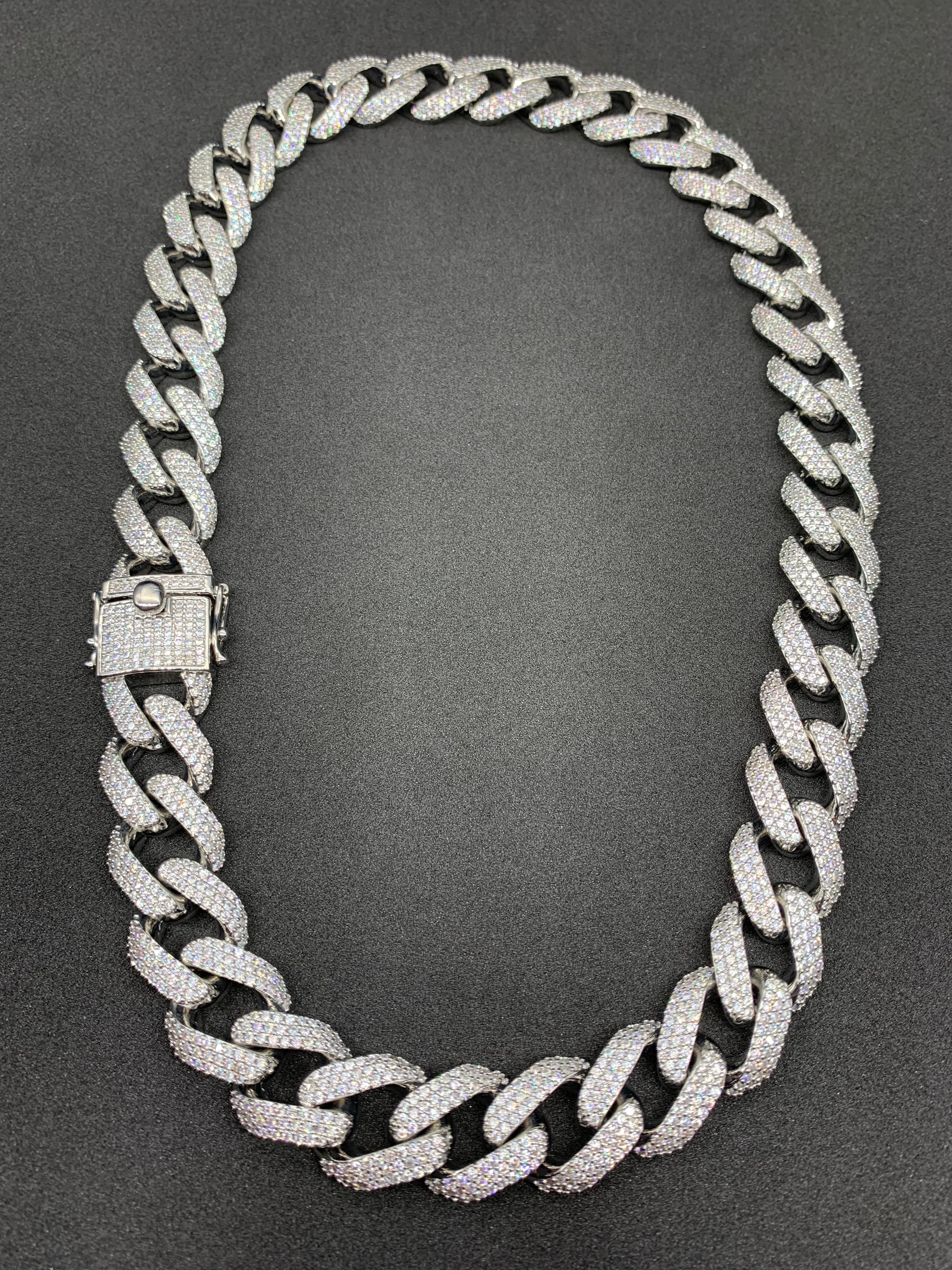 高品質!15㎜幅 パヴェ留 ジルコニア シルバー ネックレス マイアミチェーン