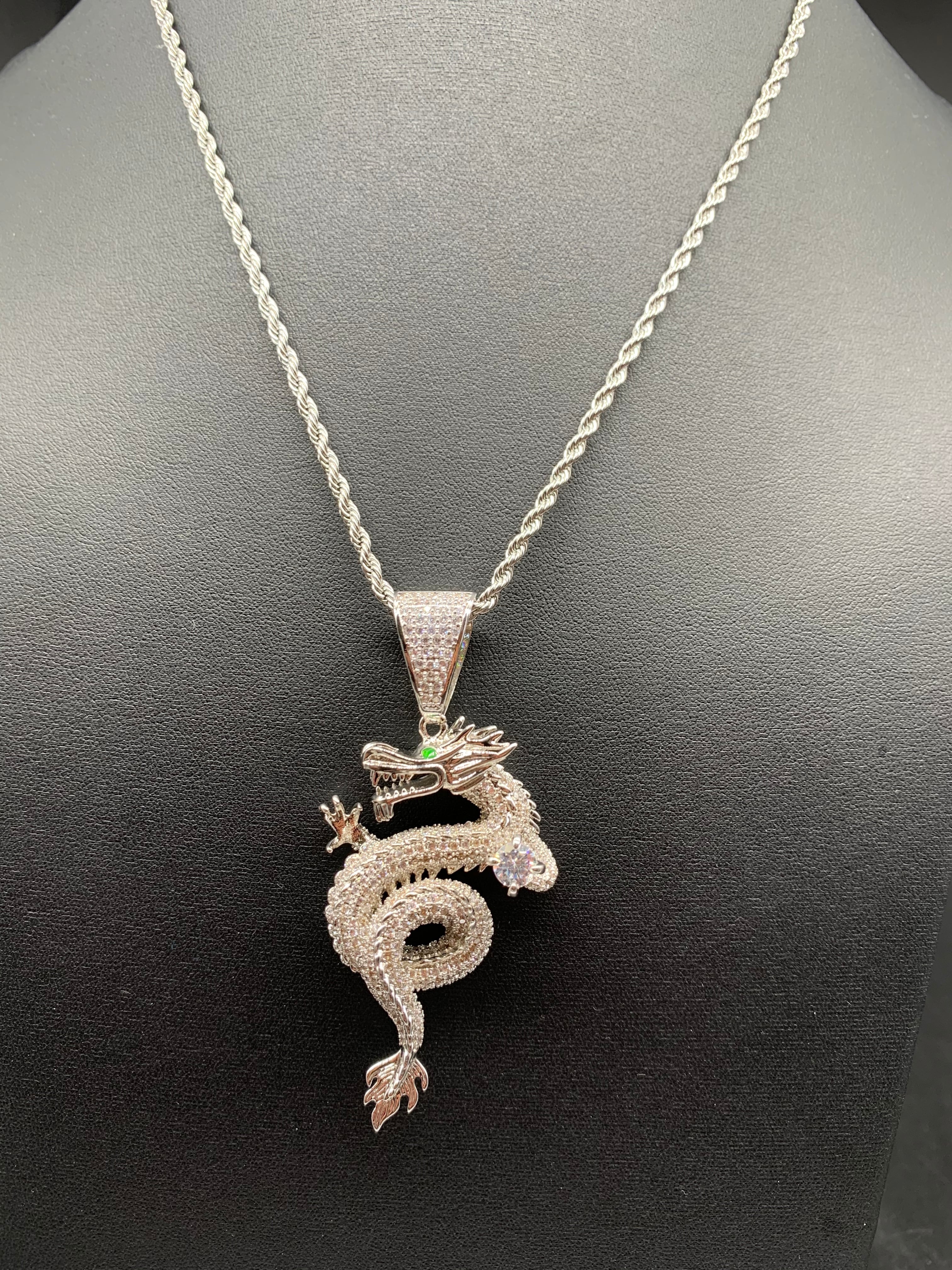 シルバー 存在感抜群! 龍神 竜 ドラゴン ジルコニア ブリンブリン ネックレス