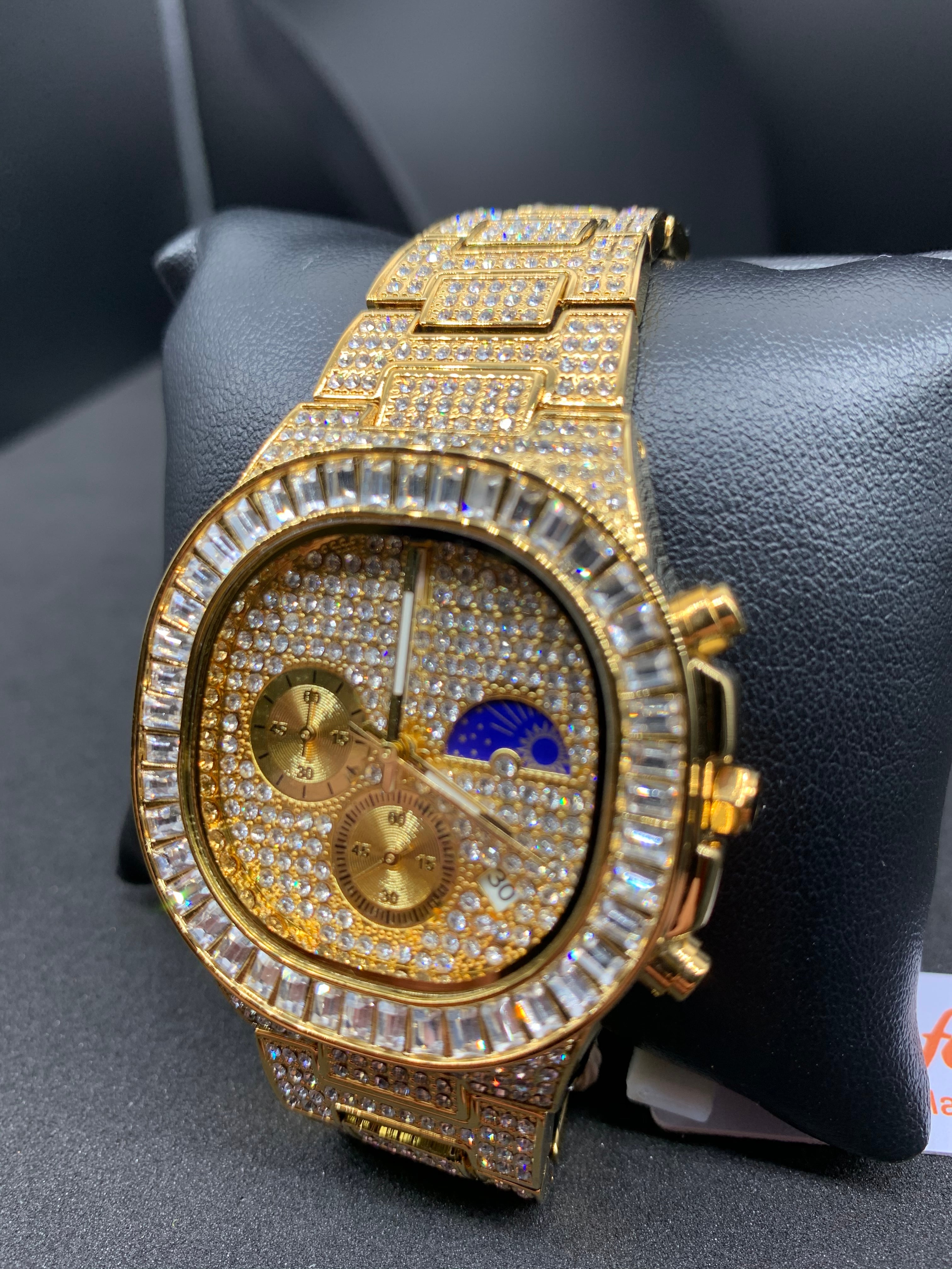 お洒落&多機能!ゴールド 5Aジルコニア ダイヤ ブリンブリン ウォッチ 腕時計
