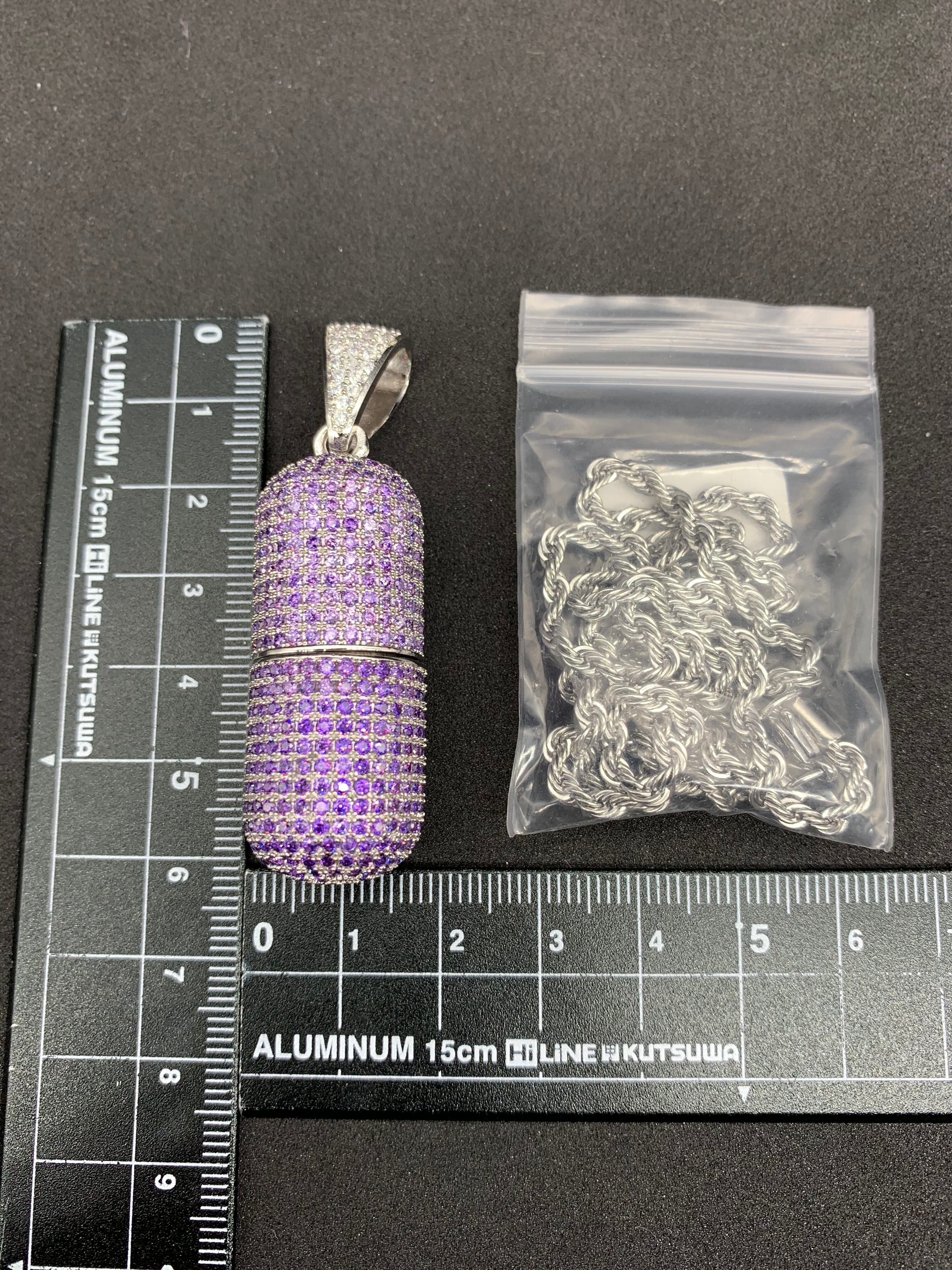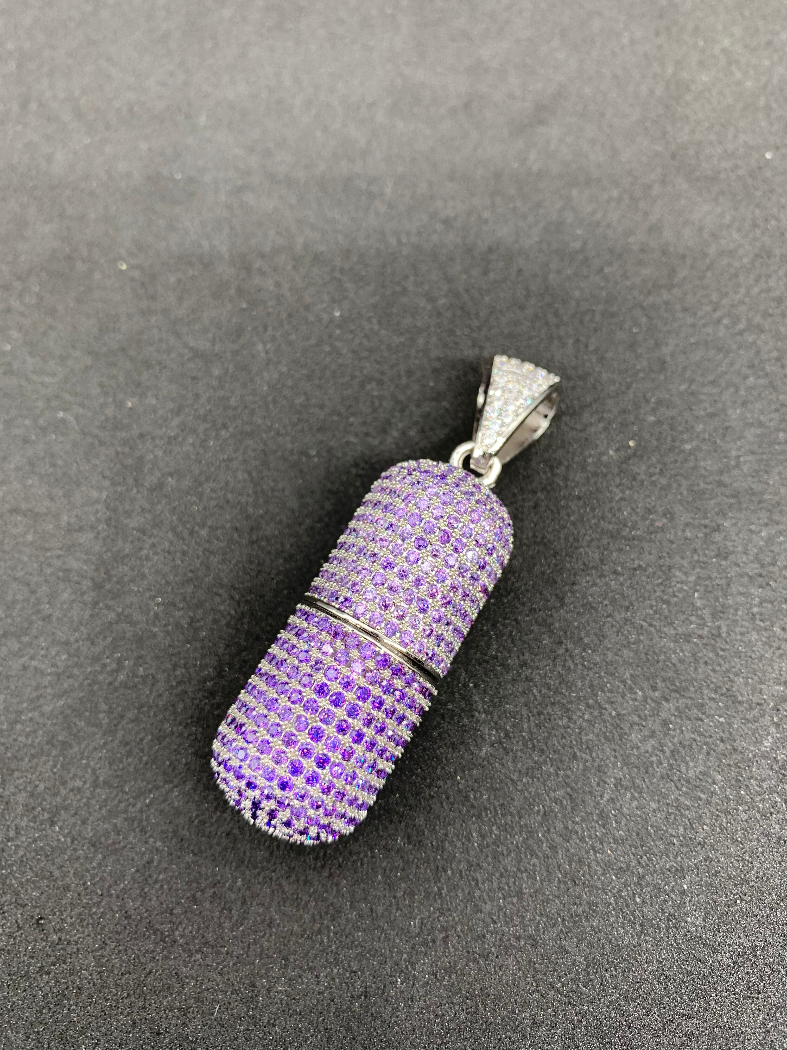 クール!「パープル・シルバー」 ピルケース カプセル ブリンブリンネックレス