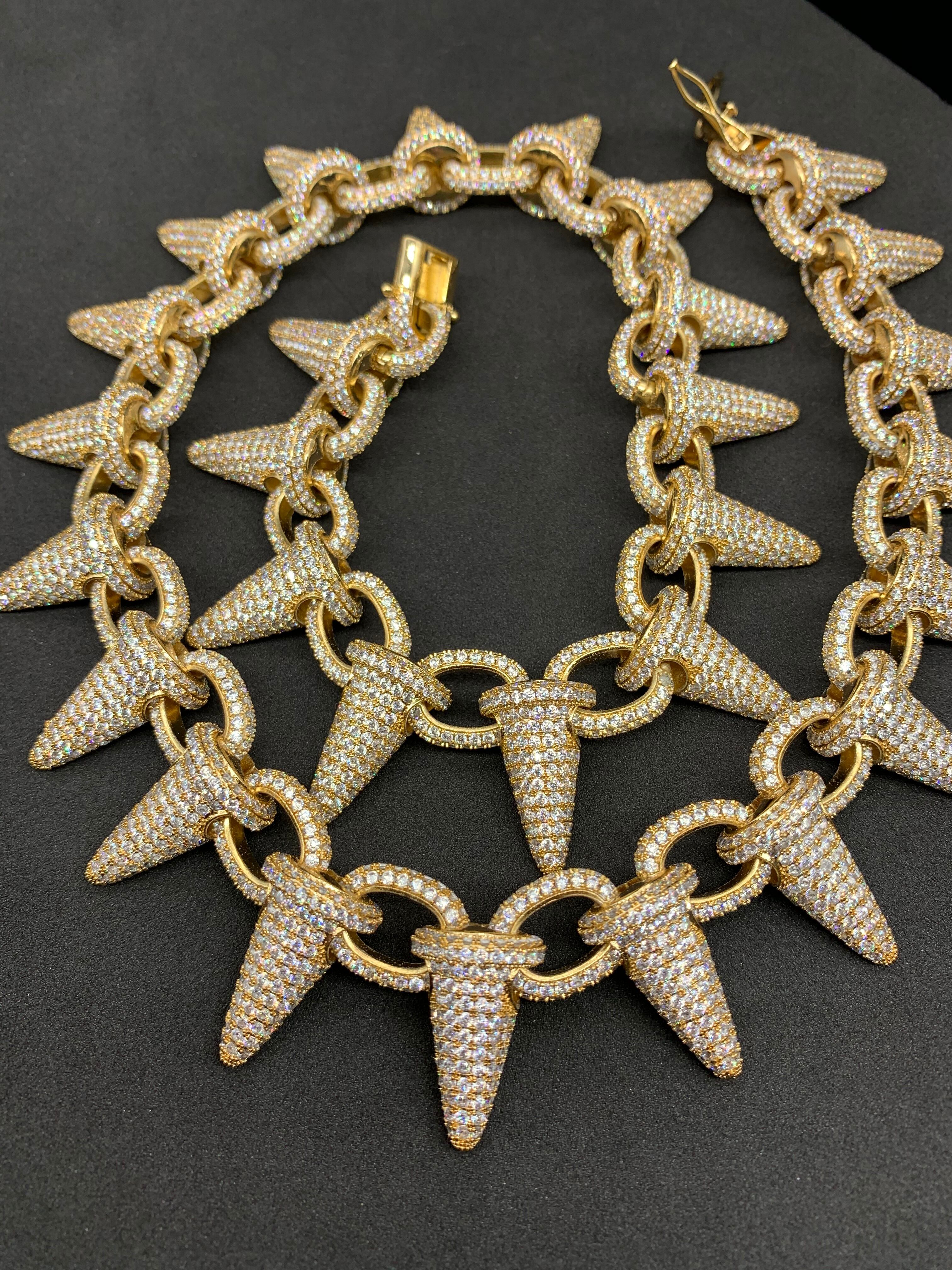 大注目!超高品質 ゴールド トゲトゲ スパイク ブリンブリン ネックレス パンク