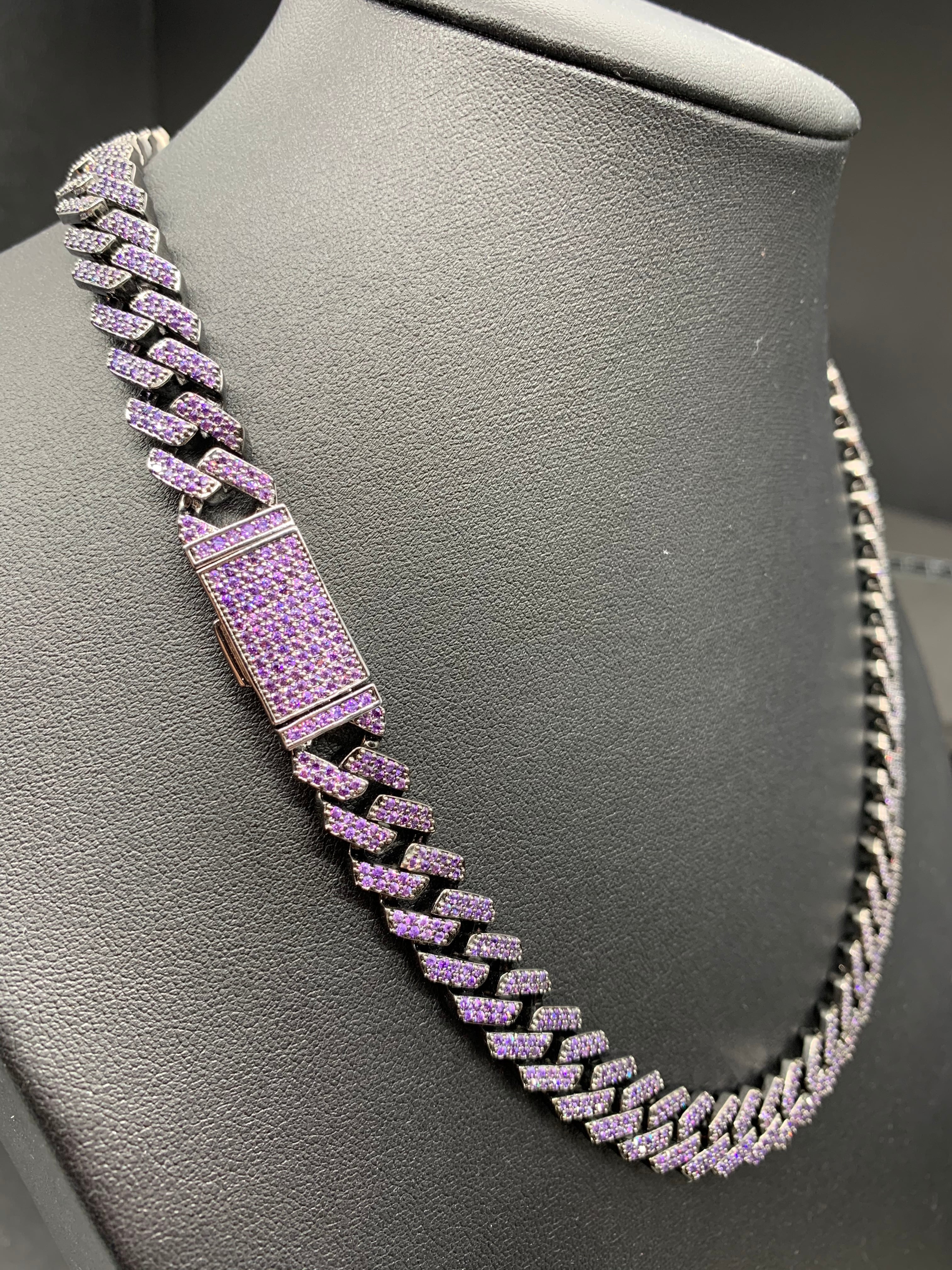 お洒落! パープル 紫 方型 プロングチェーン ブリンブリンネックレス マイアミ