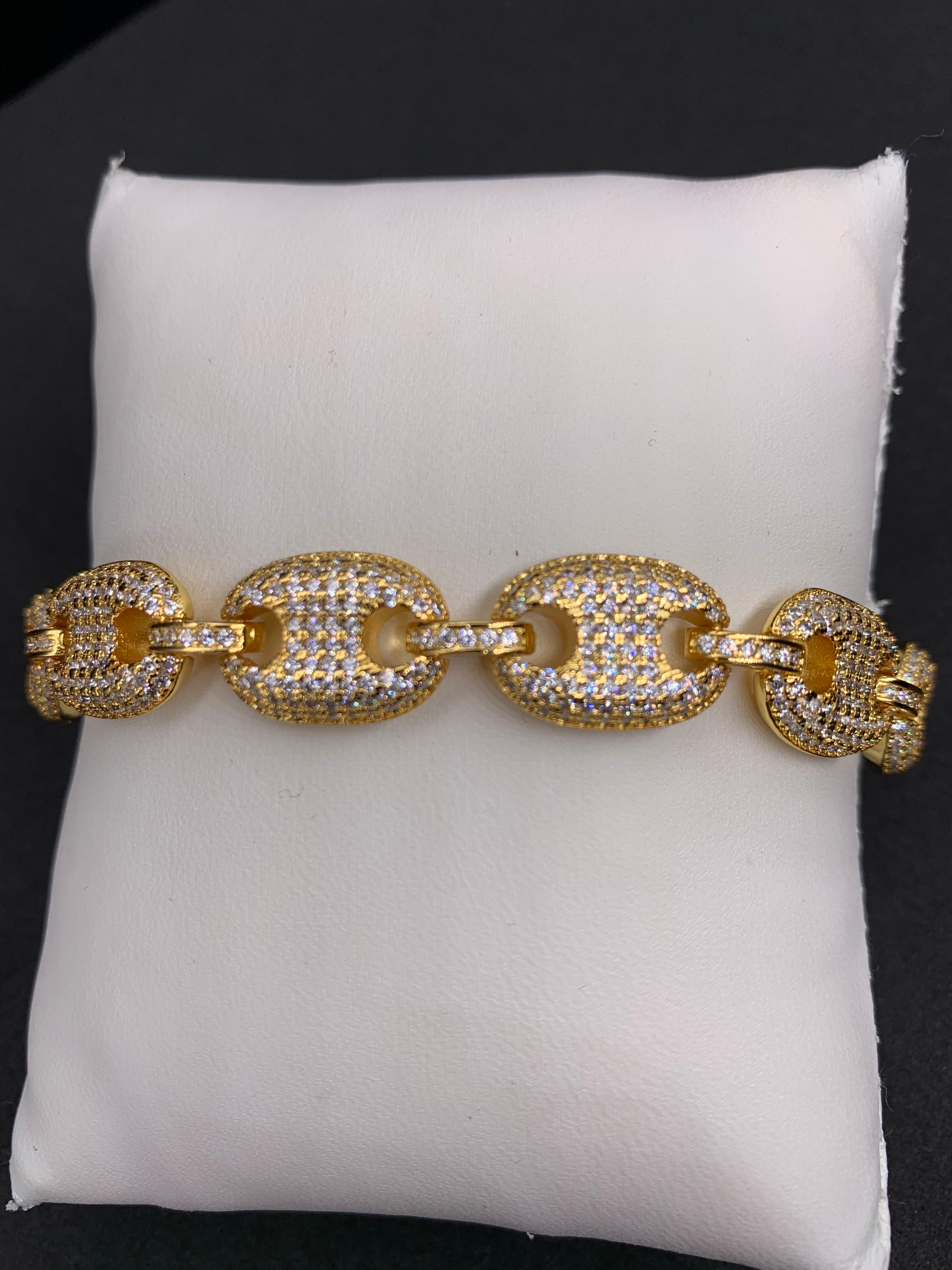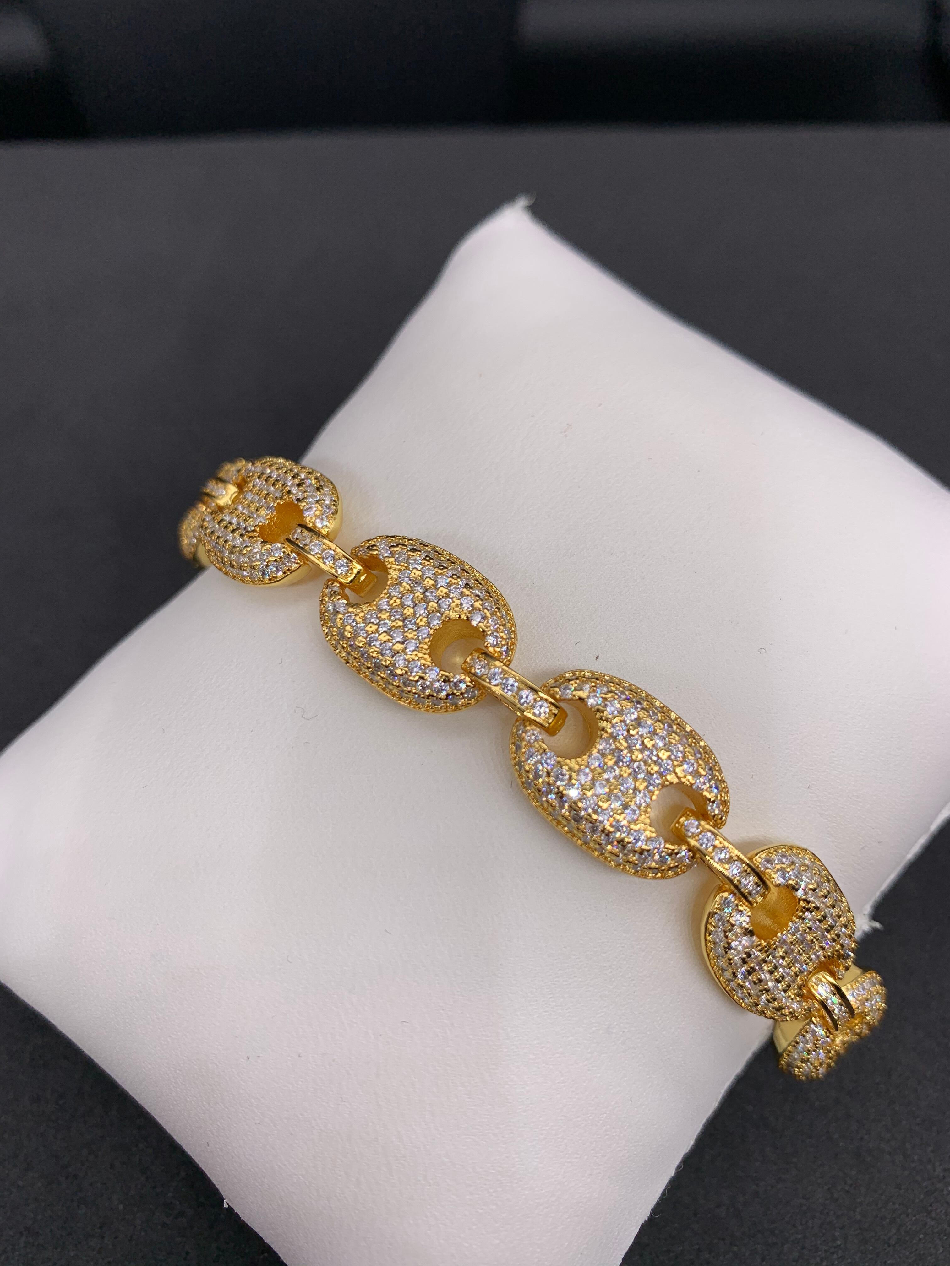 高品質 パヴェ留 ジルコニア ブレスレット グッチリンク ブリンブリン ゴールド